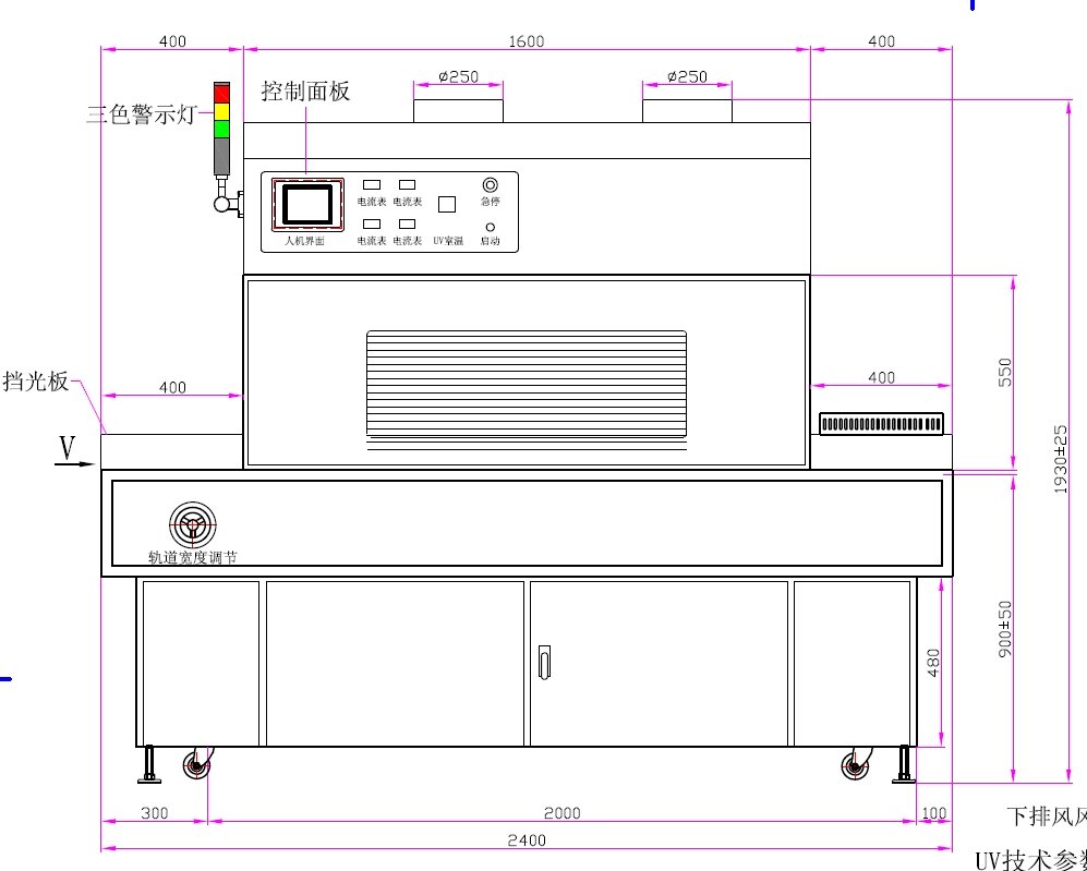 4、UV燈總長(zhǎng):3.0kw:400mm、6kw:620mm