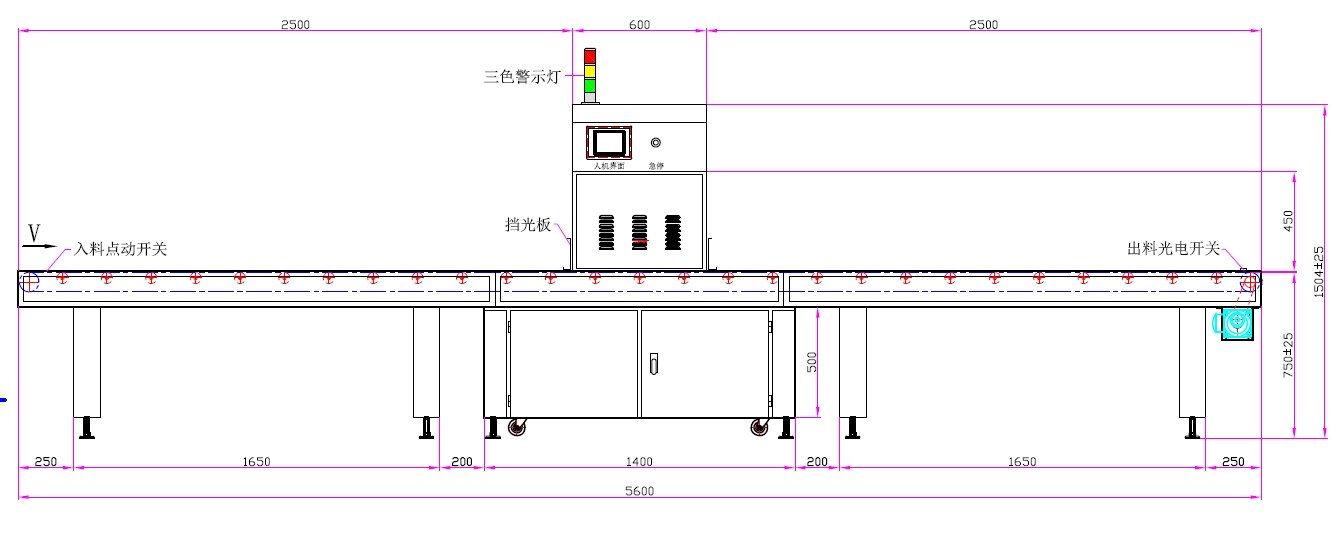 7、輸送材料:PVC網(wǎng)帶4mm厚(無動(dòng)力滾筒承托)